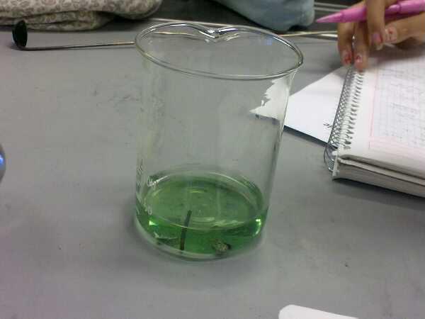 Material: Lámpara de alcohol, pinzas para tubo de ensaye, vaso de precipitados 100 ml, agitador de vidrio.
